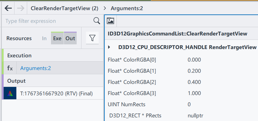ClearRenderTargetView is a function from DX12 command list. Here from GPA we can easily observe what parameters this function need.
